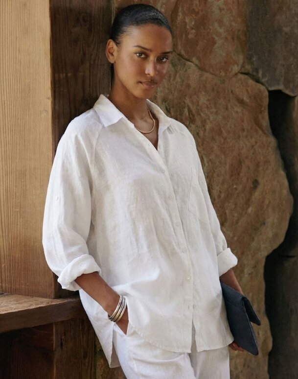 The linen feels airy but still elevated, and the cut makes it easy to style with anything. I’ve worn it to brunch, the office, and even on a weekend trip, it works for everything.”