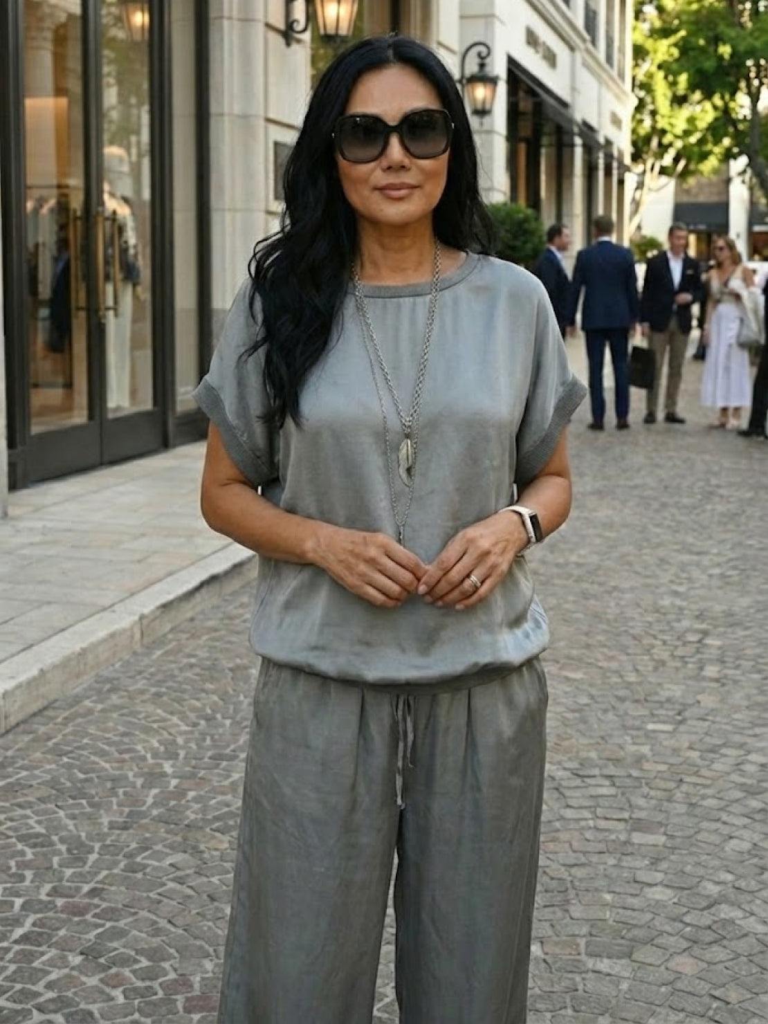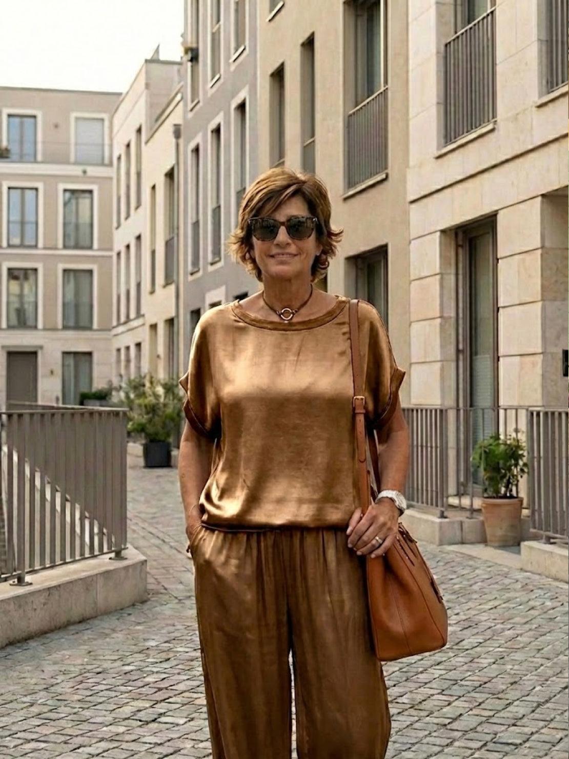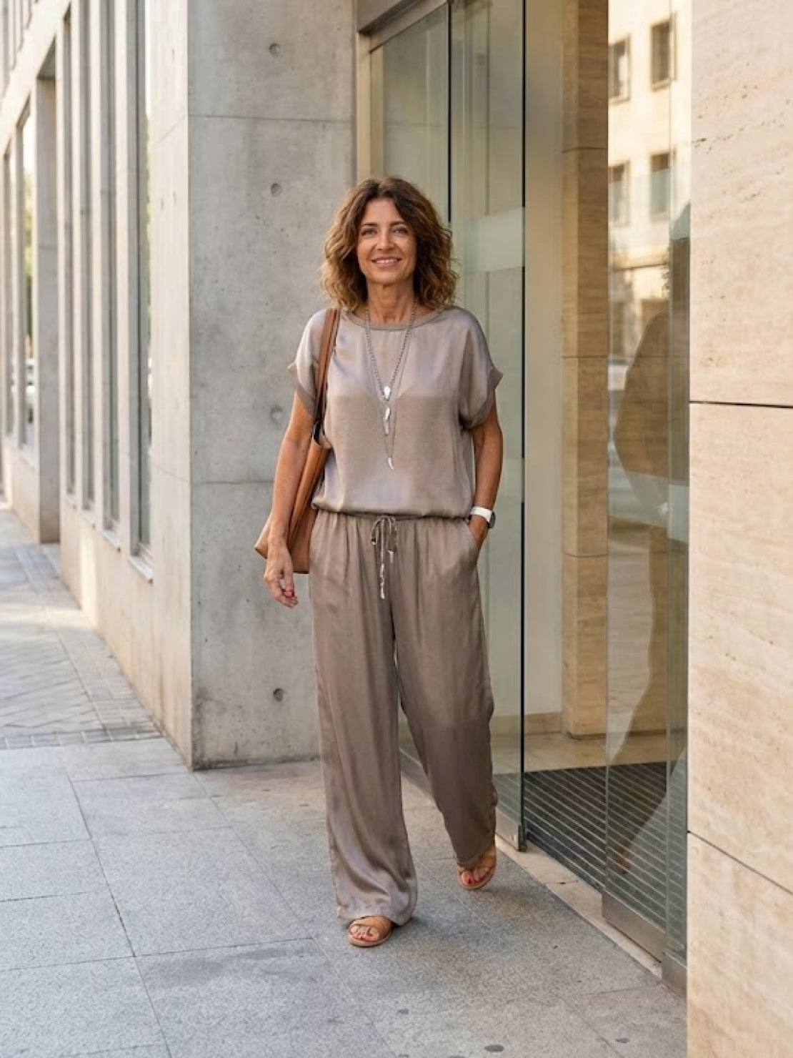 • This satin set moves with you - The fabric flows as you walk, giving you that luxury feel while letting you move freely all day.
