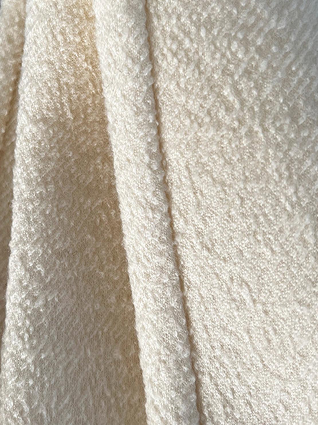 The brushed surface is soft and smooth, not scratchy like traditional wool. The lyocell content adds a silky finish that feels gentle against skin.